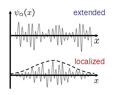 In a perfect crystal, electronic wave functions are the Bloch waves. The electron freely propagates through the crystal, and each wave function extends over the whole crystal. In a disordered crystal (e.g., due to impurities), it is natural to assume that random scattering on the impurities leads to the diffusive character of the electron motion, the disorder strength determining the diffusion coefficient. The wave functions are then randomly oscillating, but they still extend over the whole crystal. However, sometimes this picture turns out to be totally wrong, and one faces the absence of diffusion in certain random lattices. The electron, injected on one end of the sample, never reaches the other end; the diffusion coefficient is exactly zero, and all transport is stopped. Everywhere in the crystal, the wave functions are localized with an exponentially decreasing envelope. This is called Anderson localization. It is an effect of quantum interference: the propagation is stopped even in the classically allowed region. In three dimensions it occurs at sufficiently strong disorder or near the band edges. In one dimension, all states are localized by an arbitrarily weak disorder.Anderson localization is a universal phenomenon, not specific to electrons in disorder. It has been observed for microwaves, light, acoustic waves, and ultracold atoms. It may occur for any wave trying to propagate through a disordered medium. Quantum mechanics is only needed to make particles behave like waves. Formally, one always studies eigenfunctions of a linear operator which contains Laplacian of some sort (differential or discrete), as well as some kind of disordered potential.